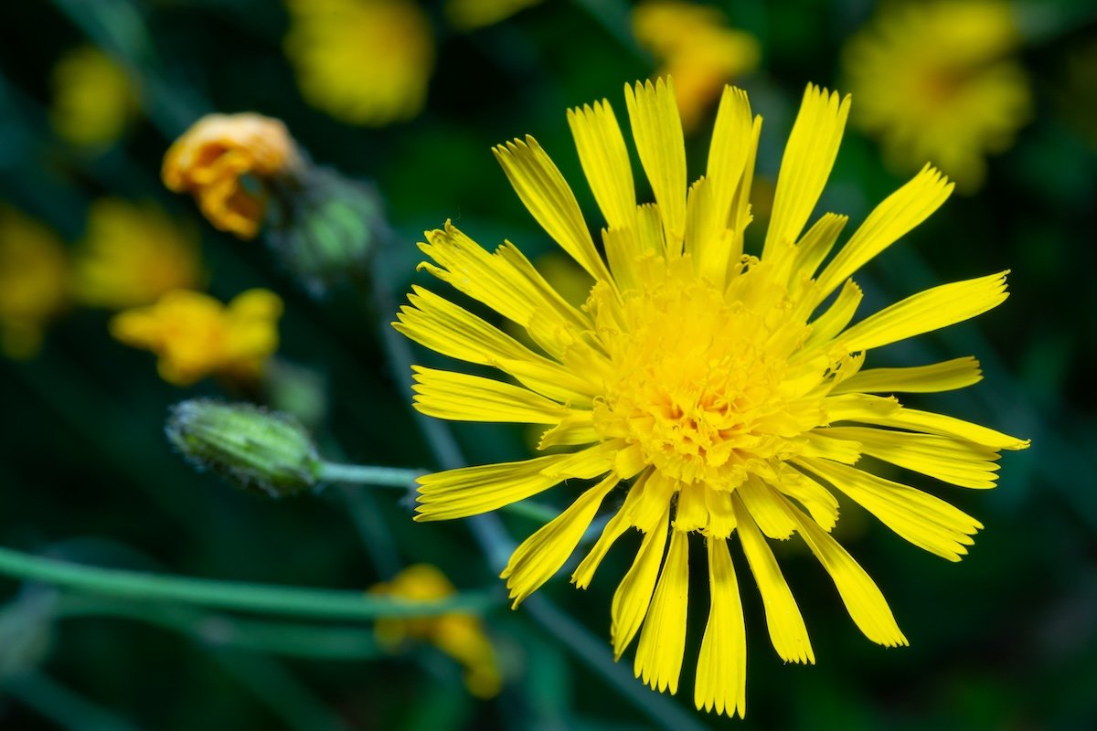 - Identification : Ses feuilles étroites, lobées et dentées forment une rosette de couleur vert moyen. Ses tiges ramifiées, pouvant atteindre 50 cm, sont légèrement velues et portent des fleurs jaunes de 3,5 cm, proches de celles du pissenlit.