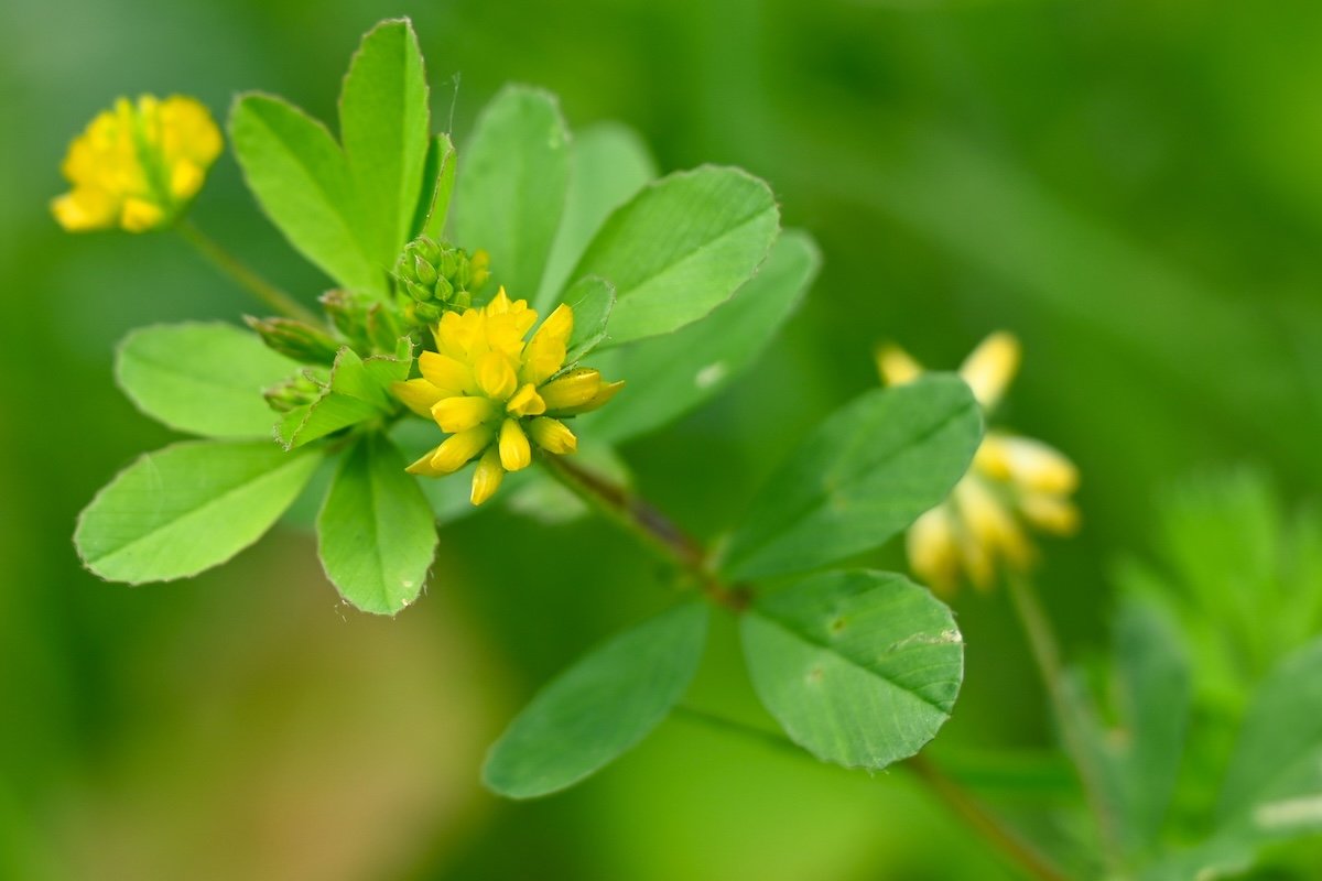 - Identification : Tout comme le trèfle blanc, le trèfle douteux est composé de petites feuilles trifoliées vert vif. Ses tiges rampantes portent de minuscules fleurs jaune pâle en été.